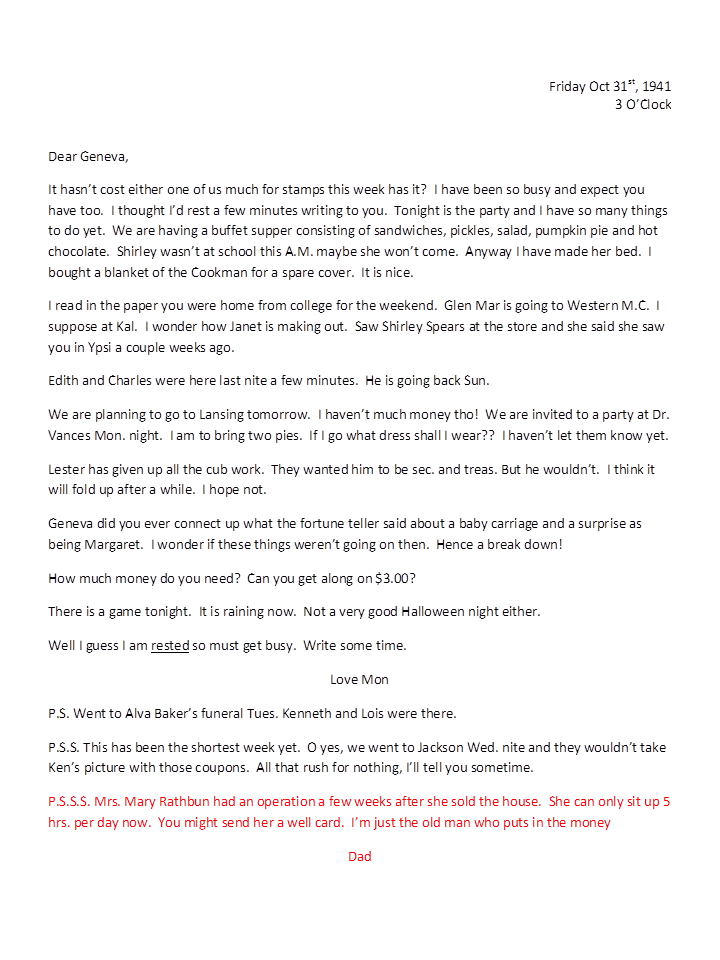 October 31, 1941, Naomi to Geneva