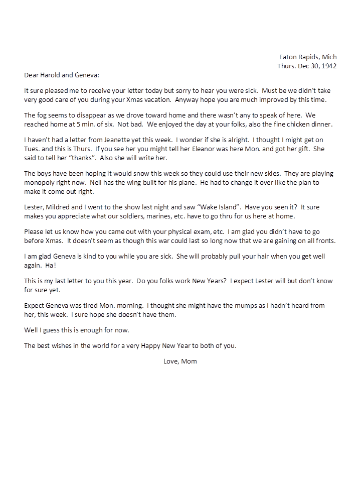December 30, 1942, Naomi to Geneva