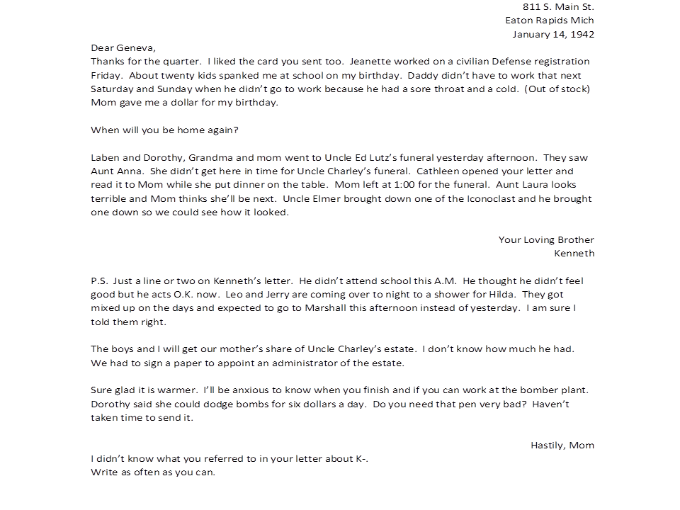 January 14, 1942, Kenneth to Geneva
