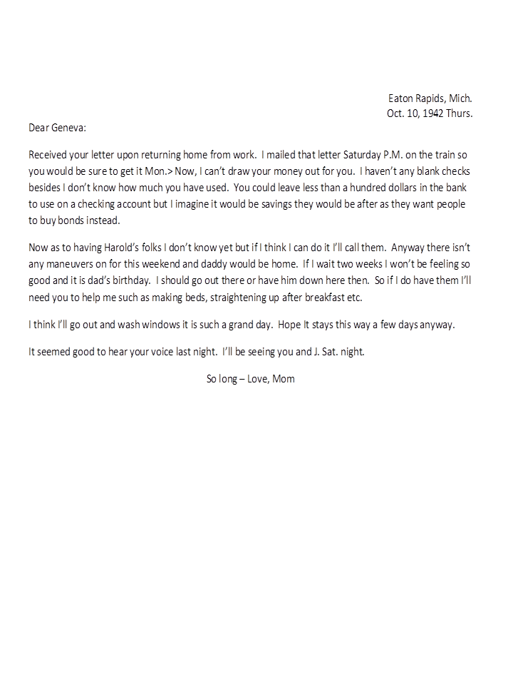 October 10, 1942, Naomi to Geneva