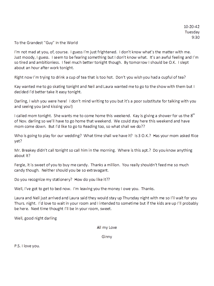 October 20, 1942, Geneva to Harold