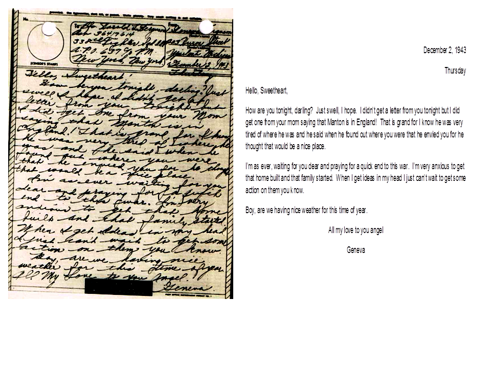 December 2, 1943, Geneva to Harold