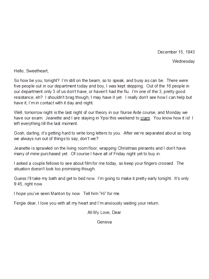 December 15, 1943, Geneva to Harold