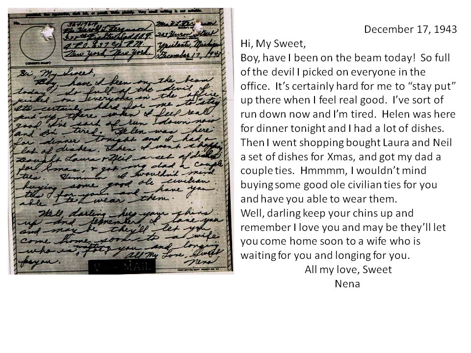 December 17, 1943, Geneva to Harold