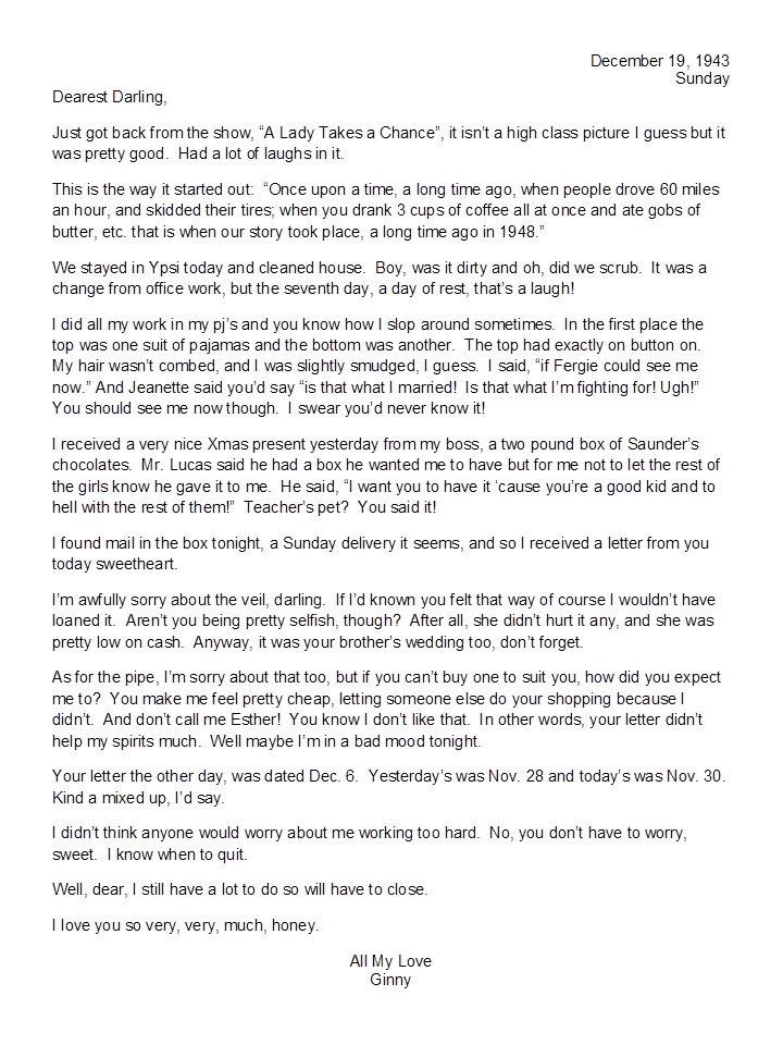 December 19, 1943, Geneva to Harold