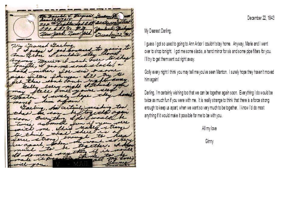 December 22, 1943, Geneva to Harold