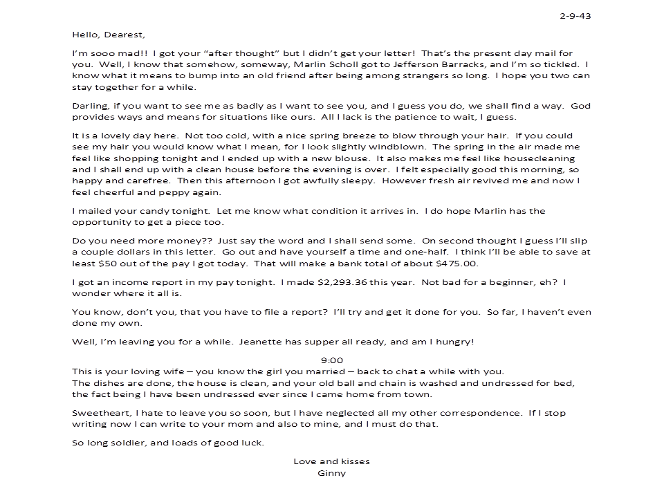 February 9, 1943, Geneva to Harold