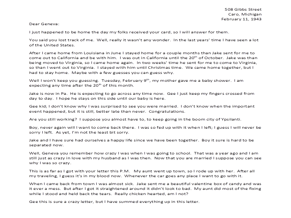 February 11, 1943, Marjorie to Geneva