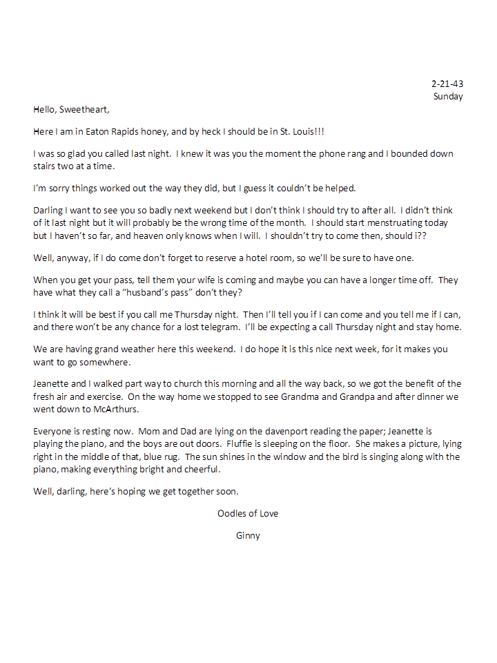 February 21, 1943, Geneva to Harold