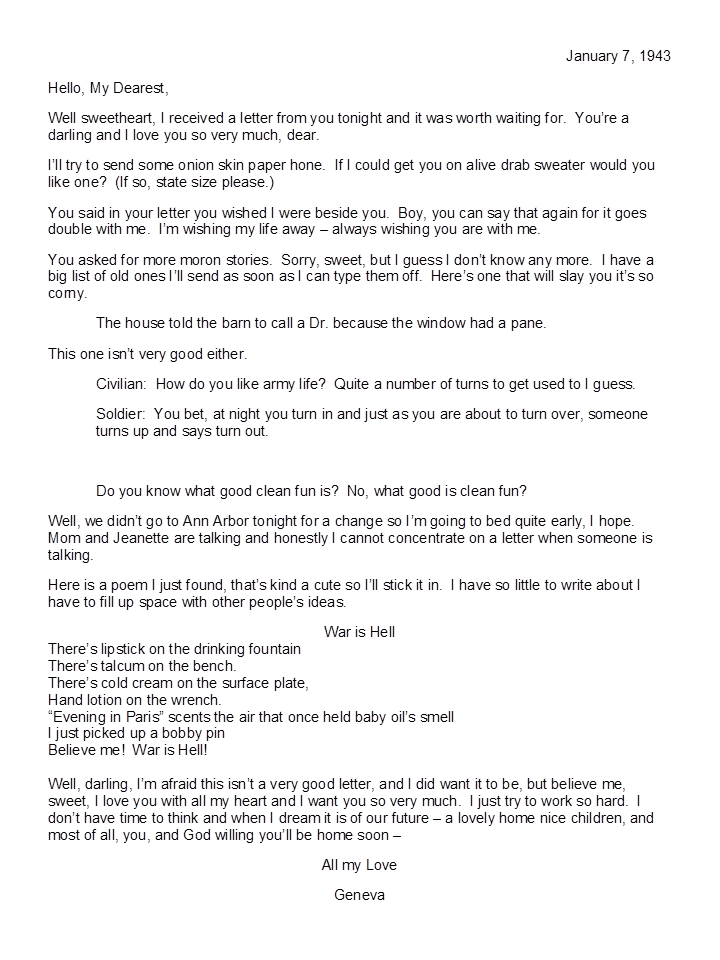 January 7, 1943, Geneva to Harold