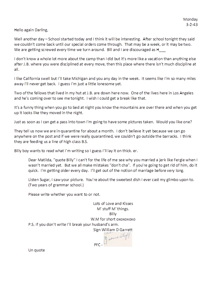 March 2, 1943, Harold to Geneva