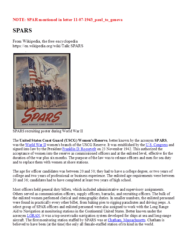 November 7, 1943, Paul to Geneva