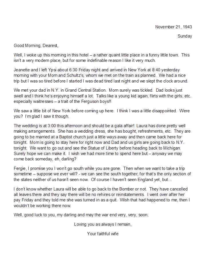 November 21, 1943, Geneva to Harold