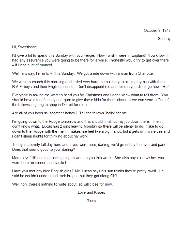 October 3, 1943, Geneva to Harold