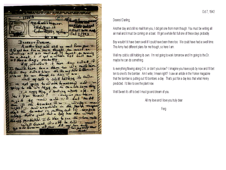 October 7, 1943, Harold to Geneva