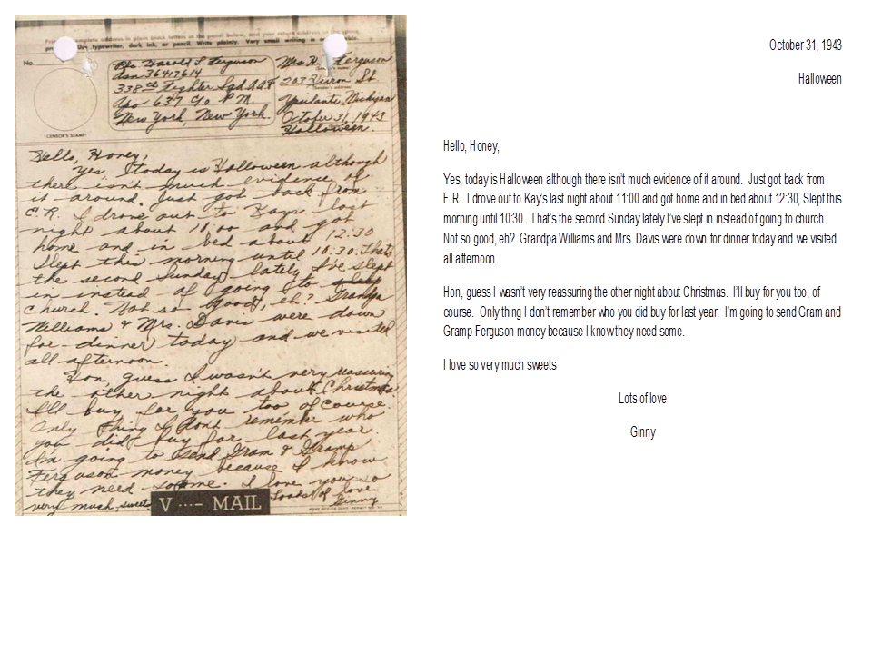 October 31, 1943, Geneva to Harold
