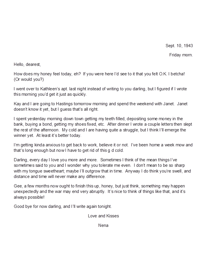 September 10, 1943, Geneva to Harold