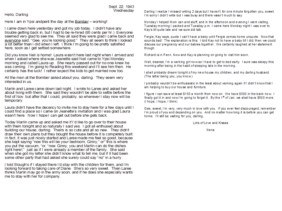 September 22, 1943, Geneva to Harold