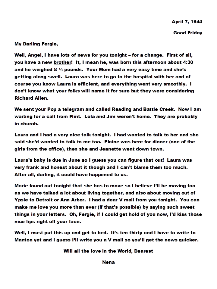 April 7, 1944, Geneva to Harold
