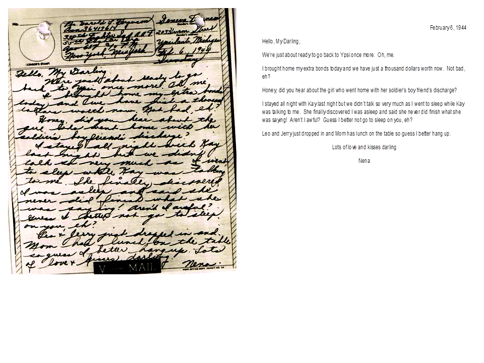 February 6, 1944, Geneva to Harold