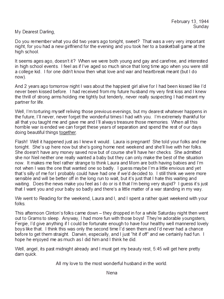 February 13, 1944, Geneva to Harold