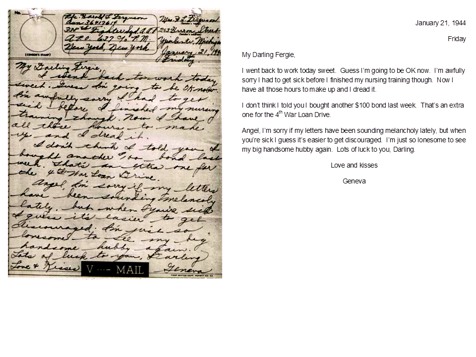 January 21, 1944, Geneva to Harold