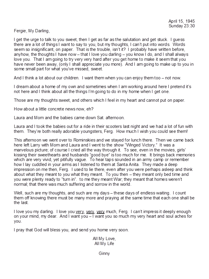 April 15, 1945, Geneva to Harold
